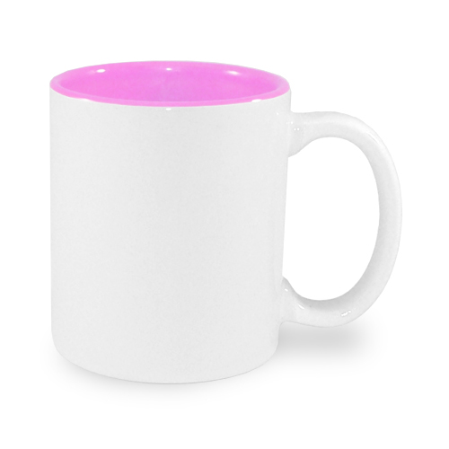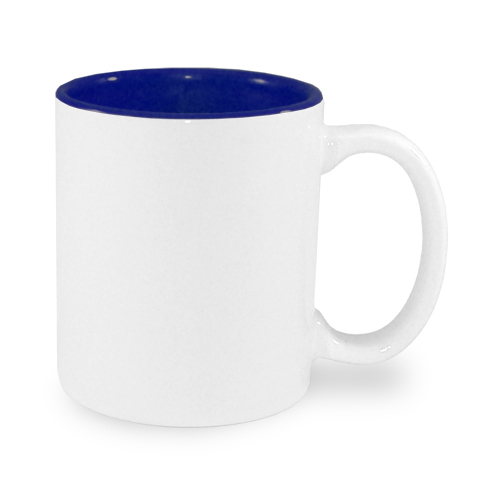 Biały kubek ceramiczny z kolorowym wnętrzem, powlekany warstwą poliestru do wykonywania nadruków w technologii sublimacji.