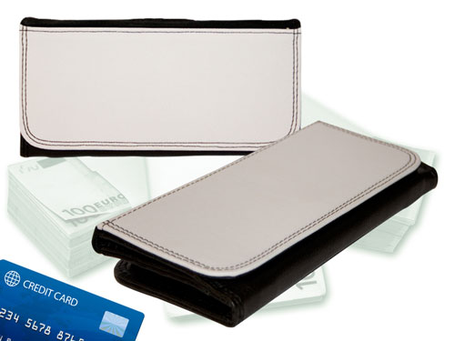 Portfel do wykonywania nadruków w technologii sublimacji. Portfel wykonany z ekoskóry, wyposażony w praktyczne kieszonki na bilon, banknoty oraz inne drobiazgi.