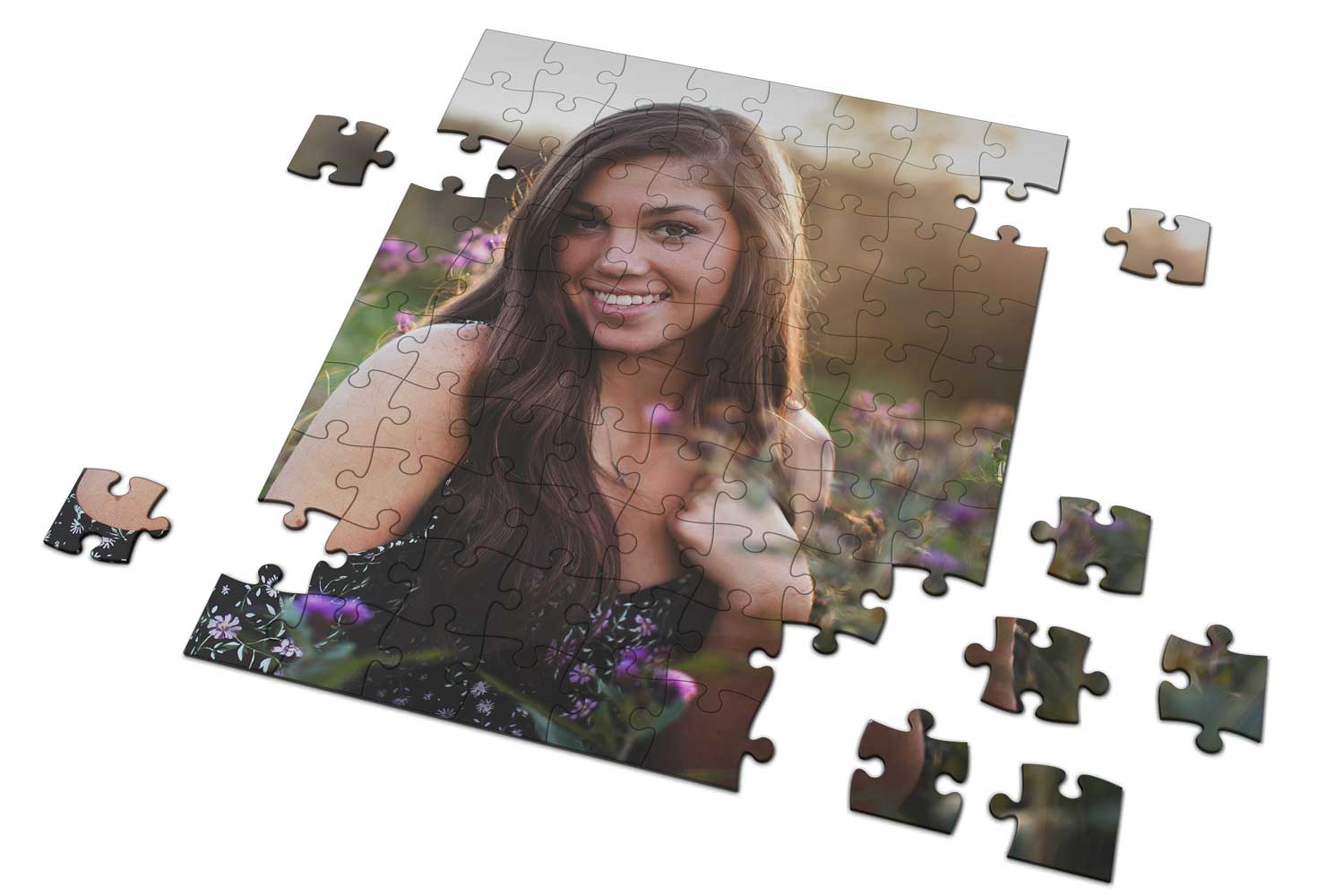 Tekturowe Fotopuzzle przeznaczone do nadruku wykonane na niebieskiej tekturze puzzlowej. Zapakowane w tekturowe pudełko ze zdjęciem nadrukowanym na puzzlach.